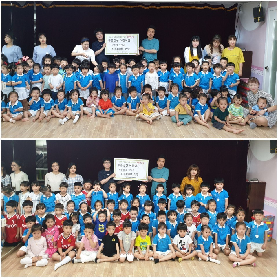 지난 11일(화) 남양주시 푸른강산어린이집(원장 박한별)에서는 원생들과 학부모가 함께 나눔장터를 개최 및 참여해 발생한 수익금(511,100원)을 전액 북부희망케어센터(센터장 류시혁)에 전달하였다. 이번 수익금은 학부모 참여활동의 일환으로 원아들의 사회성과 경제관념을 길러주기 위한 '시장놀이'를 개최하고 물품을 판매하여 원생들이 고사리 손으로 직접 마련한 수익금이다. 푸른강산어린이집 박한별 원장은 "이러한 기회를 통해 아이들이 나눔이란 의미를 자연스럽게 배우게 되는 좋은 기회가 되었으며, 기쁜 마음으로 학부모님들과 원아들이 정성을 담아 어려운 이웃에 도움이 되고자 마련하였다. 지역에 어려운 이웃을 대상으로 하는 복지사업에 쓰였으면 좋겠다."고 뜻을 전해주셨다. 한편, 푸른강산어린이집은 2015년도부터 시장놀이를 통해 발생한 수익금을 북부희망케어센터에 전달하고 있으며 원아들의 따뜻한 손길로 모인 후원금은 남양주시 북부권역 저소득 소외게층을 위한 여름나기 지원사업에 사용될 예정이다.