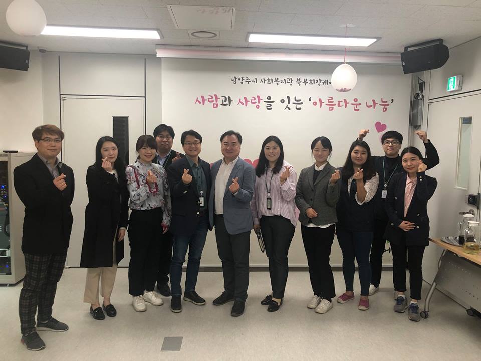 지난 24일(수) 부산시 사하구 장림동에 위치한 신장림사랑채노인복지관(관장 김동현)에서 북부희망케어센터(센터장 류시혁)를 방문하였다. 북부희망케어센터의 복지시스템에 대한 경험을 나누고 복지 대상자를 새로이 만나고 관계를 맺는 일, 지역주민을 움직이게 하는 일, 지역사회를 변화시킬 수 있는 것들에 대해 나누어보는 시간을 가졌다. 북부희망케어센터 류시혁 센터장은 "신장림사랑채복지관 선생님들을 만나게 되어 너무 반갑고 소중한 시간이었다. 무엇보다 지난 12년동안 희망케어센터가 달려왔던 시간을 되돌아보며 초심을 찾고 기본에 충실하자는 생각으로 에너지 충전되는 시간이었다."라고 말했다.