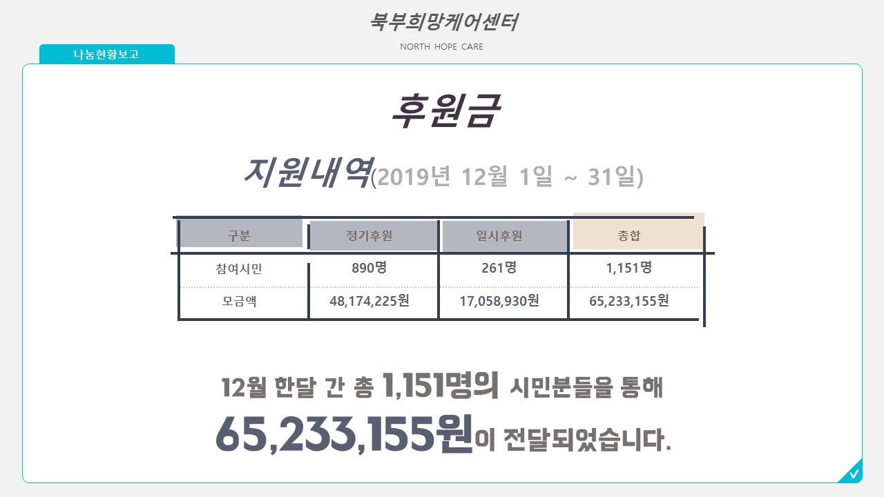 북부희망케어센터 북부희망케어센터, 12월 나눔현황 보고