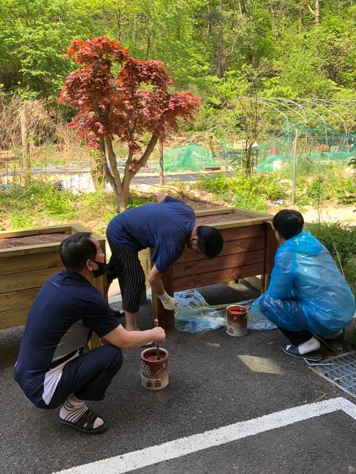 북부희망케어센터에서는 케어안심주택 입주자들의 여가생활을 위한 공동텃밭을 조성하였다. 케어안심주택 공동텃밭은 케어하우스 입주용으로 1인당 화단 1개를 맡아 개별적으로 관리하며, 심고 싶은 쌈채소를 심을 예정이다. 케어안심주택 입주민들은 기대감이 높은 상태로, 화단 페인트 작업을 자발적으로 나서 주인의식을 가지고 함께 진행하였다. 화단 앞에 설치한 평상에도 삼삼오오 모여 담소를 나누기도 하고, 주변에 계신 주민들도 오셔서 구경하였다. * 케어안심주택이란? : 노인가구가 지역 내에서 독립적으로 생활하기 위한 안정적인 주거지를 확보하고, 이를 거점으로 통합 돌봄서비스를 지원하여 지역사회 정착을 위한 자립기반을 마련하는 중간집의 형태