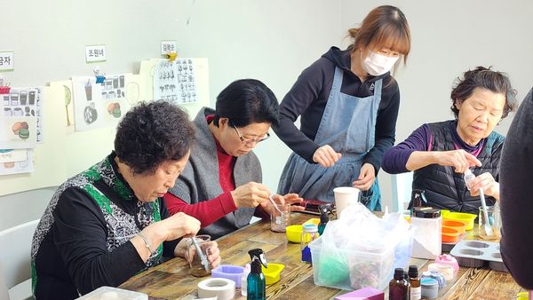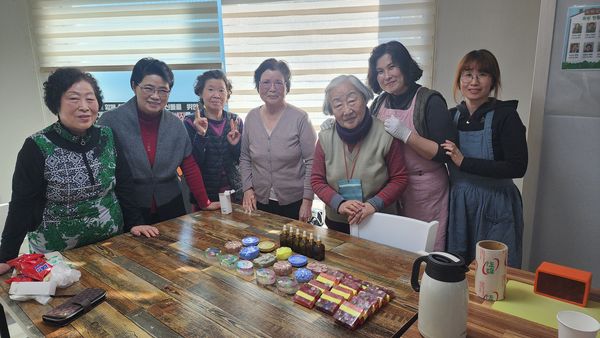 오늘은 우하청 노인공동체 자조모임 어르신과 천연 비누만들기와 화장품 만들기를 진행하였습니다!