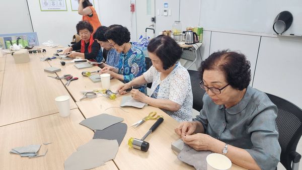 지난 25일 화요일부터 우하청 회원님들은 바쁜 일정을 보냈는데요~ 오후 1시에는 캘리그라피를 배워보며 예쁜 글귀를 작성해보고 이후에는 느티나무봉사단 김채린 단장님의 재능기부로 환경지킴이 교육의 일환으로 재활용 가죽 지갑 및 키링을 만들어 보는 시간을 가졌습니다.