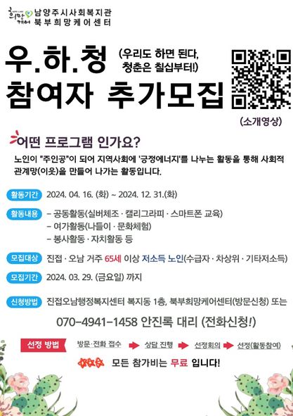 북부희망케어센터 우리도 하면된다, 청춘은 칠십부터! - 우.하. 청. 참여자 추가모집! (24.03.08)
