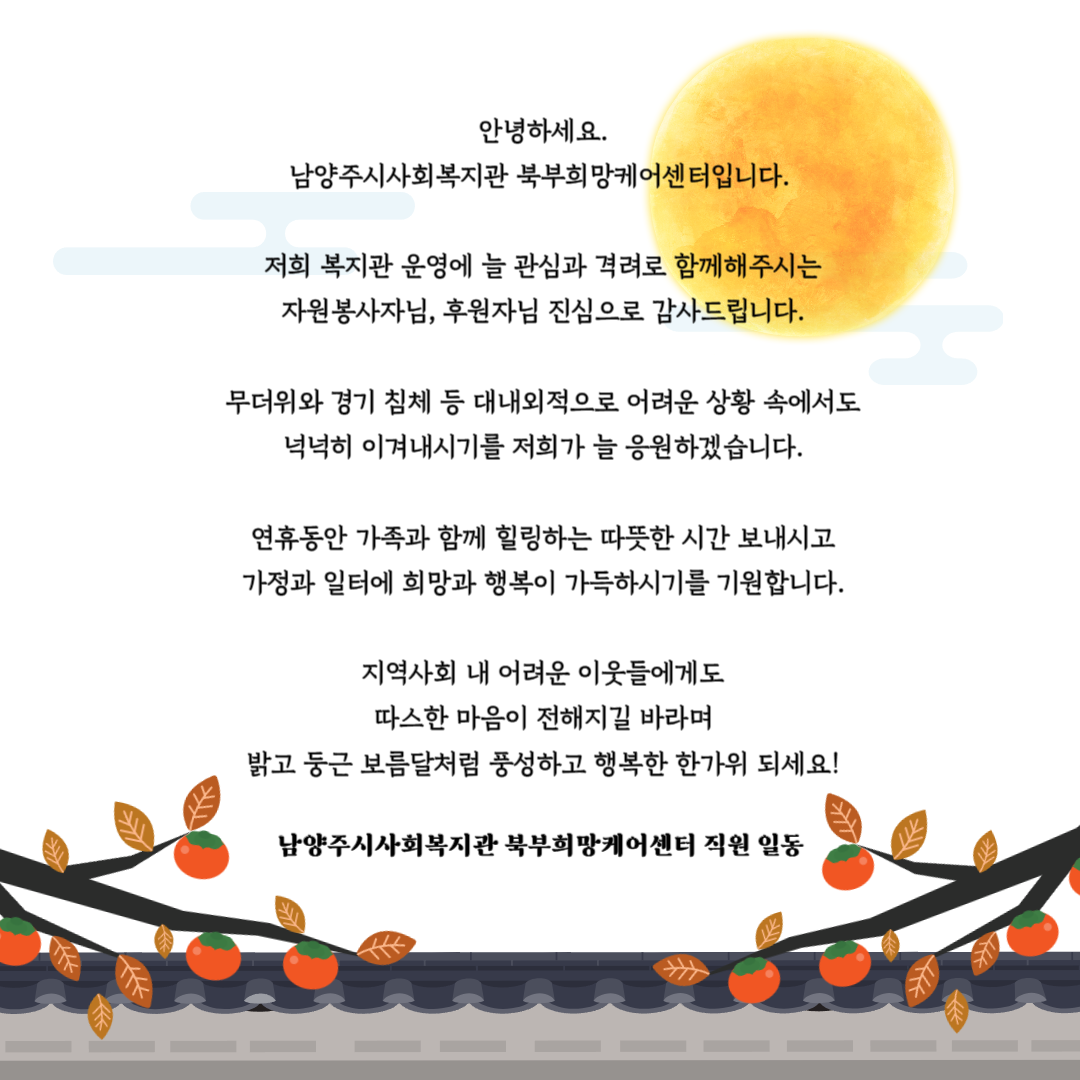 북부희망케어센터 보름달처럼 풍요롭고 아름다운 한가위 되세요❤