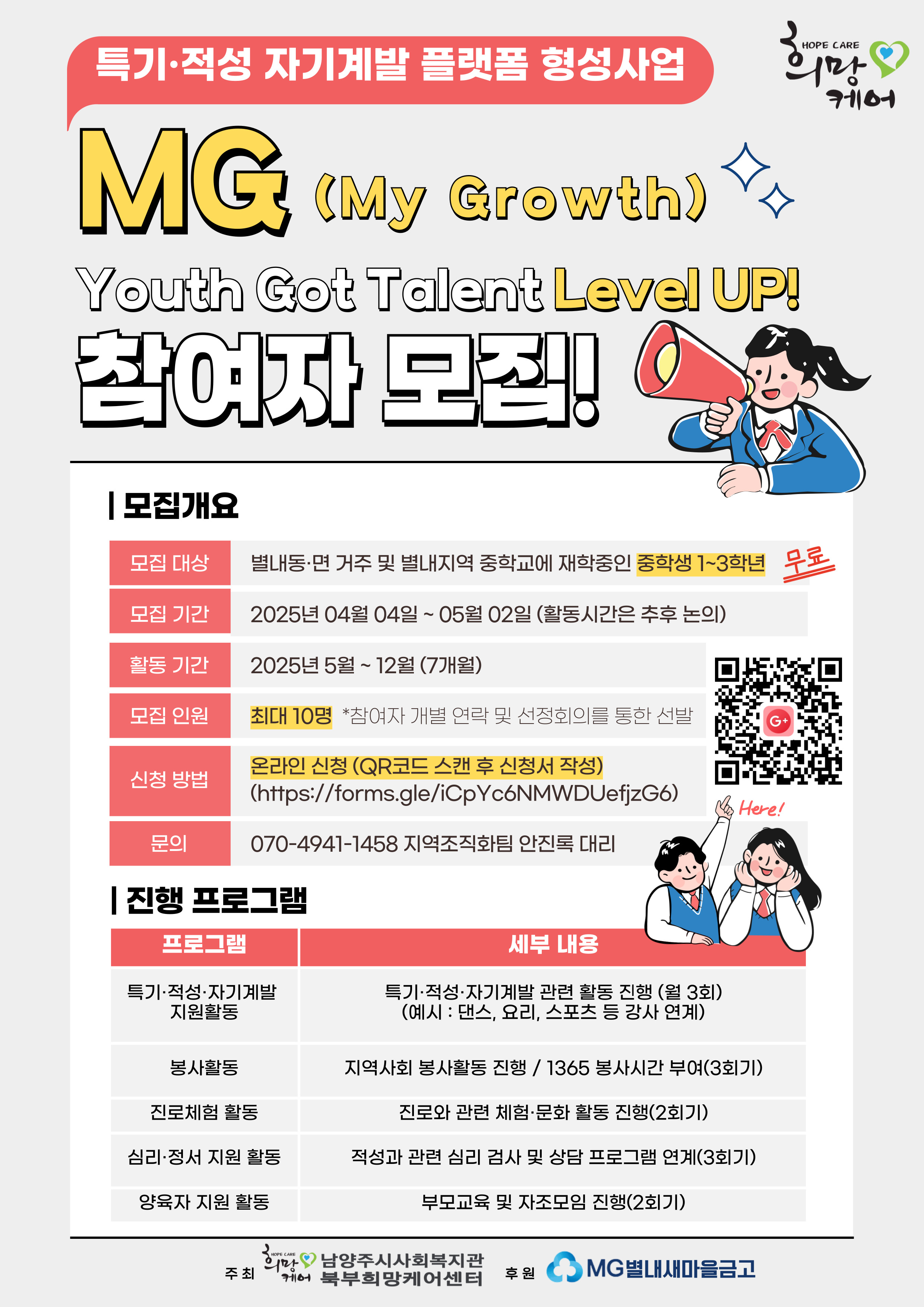 북부희망케어센터 [재모집] 2025년 별내 중학생의특기·적성 자기계발 플랫폼 형성사업 MG(My Growth) Youth Got Talent Level UP!