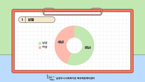총 101분의 후원자님들이 설문에 참여해주셨으며 11개의 문항에 대한 결과를 공유드립니다! 다시 한번 만족도 조사에 참여해주신 후원자님들께 감사인사드리며 보내주신 소중한 의견을 바탕으로 더욱 변화하는 북부희망케어센터가 되겠습니다. 감사합니다!
