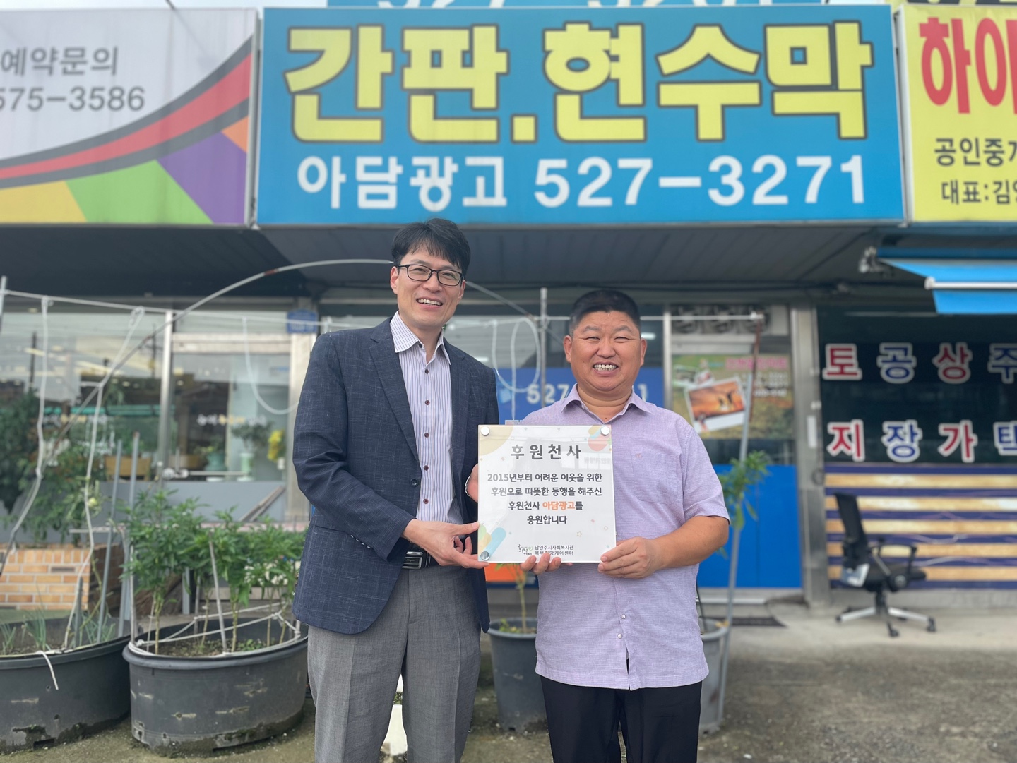 남양주시 진접읍에 위치한 아담광고(대표 김용욱)에 후원천사 현판을 전달드렸습니다.