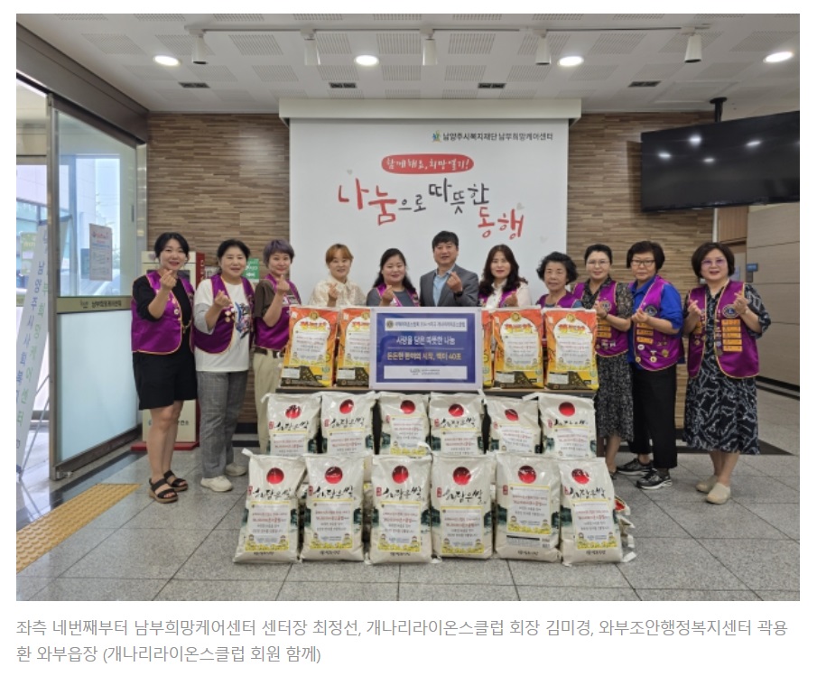 남부희망케어센터 [남부희망케어센터] 남양주 개나리라이온스클럽, 복지취약계층에 쌀 40포 기부