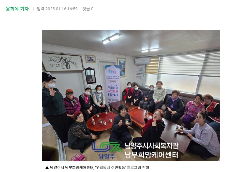 [경기&뉴스] 남양주시 사회복지관 남부희망케어센터는 지난 14일 금곡동 주민 모임