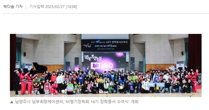남부희망케어센터 남양주시 남부희망케어센터, ‘비행기장학회 16기 장학증서 수여식’ 개최